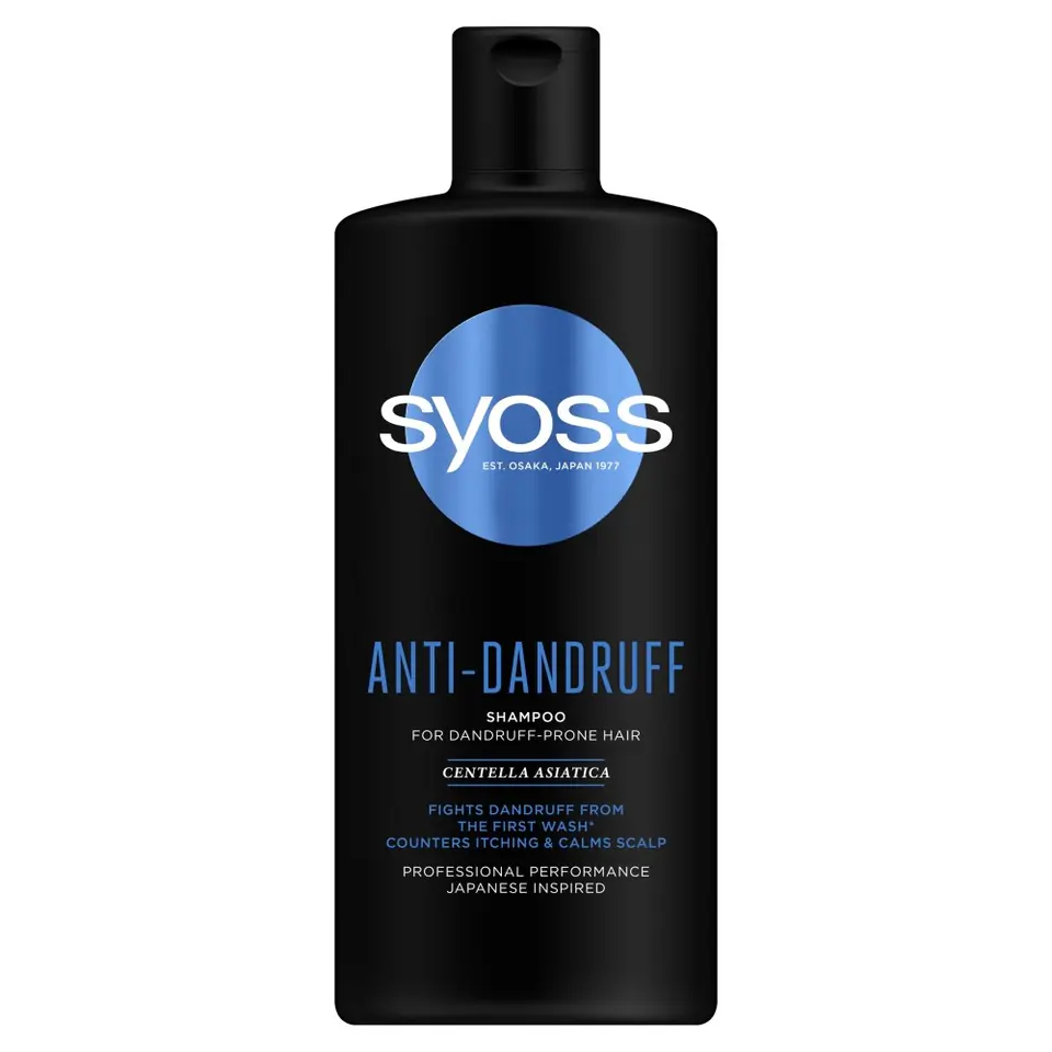 Szampon przeciwłupieżowy Syoss Anti-Dandruff. Formuła z kompleksem aminokwasów i trawą tygrysią zwalcza oznaki łupieżu już od pierwszego mycia*, kojąc skórę głowy i ograniczając swędzenie.