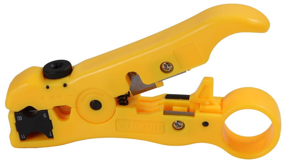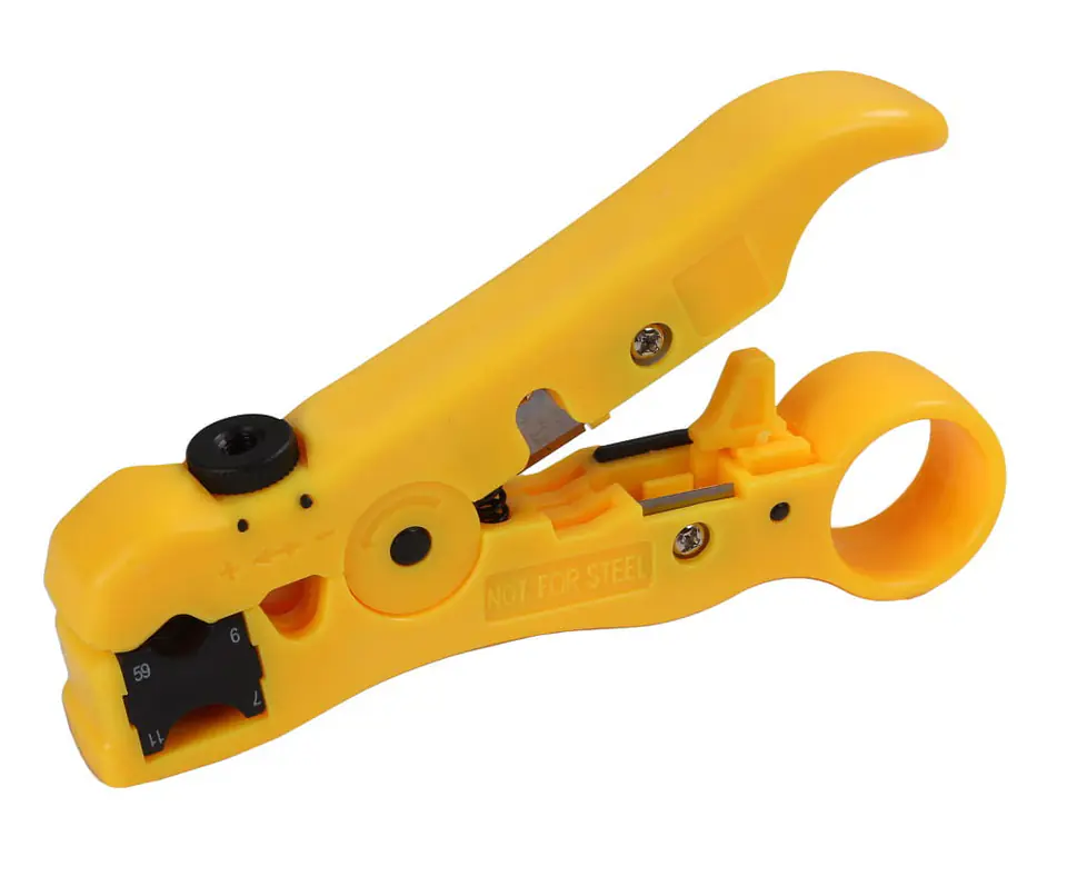 Profesjonalny ściągacz izolacji z obcinarką wykonany z wysokiej jakości tworzywa sztucznego z możliwością regulacji średnicy cięcia. Narzędzie zostało wyposażone w specjalne ostrza do odizolowania przewodów koncentrycznych, sieciowych oraz telefonicznych.