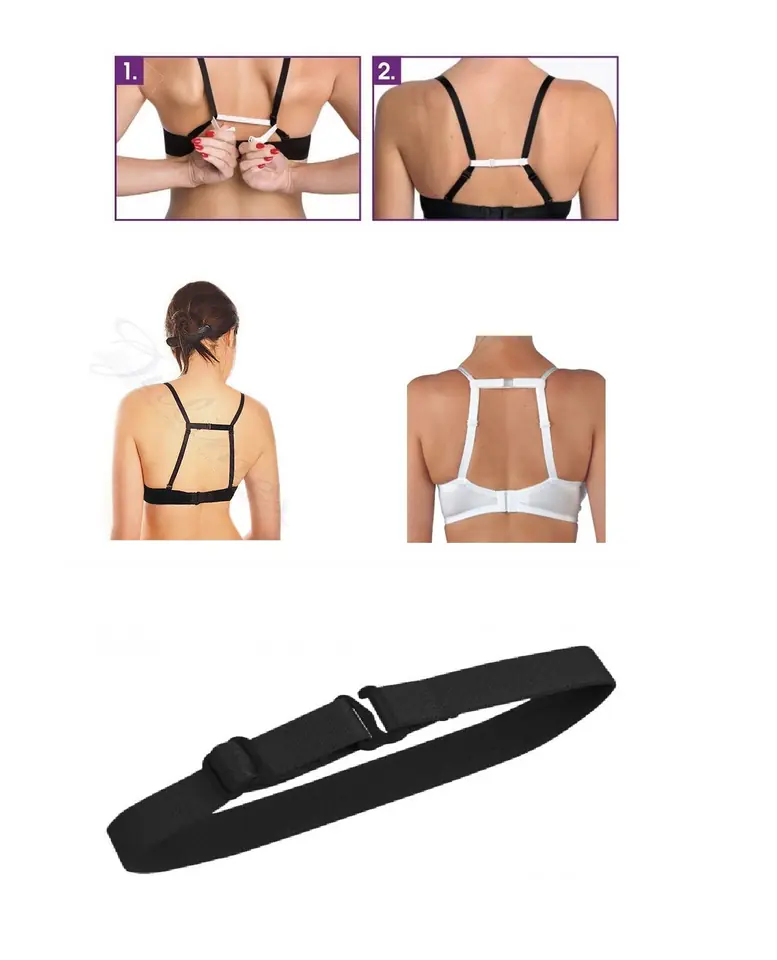 Ściągacz zapobiega zsuwaniu się ramiączek. Pozwala łatwo i dyskretnie ukryć ramiączka w ubraniach z wyciętymi plecami. Posiada regulację długości.