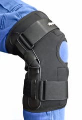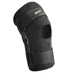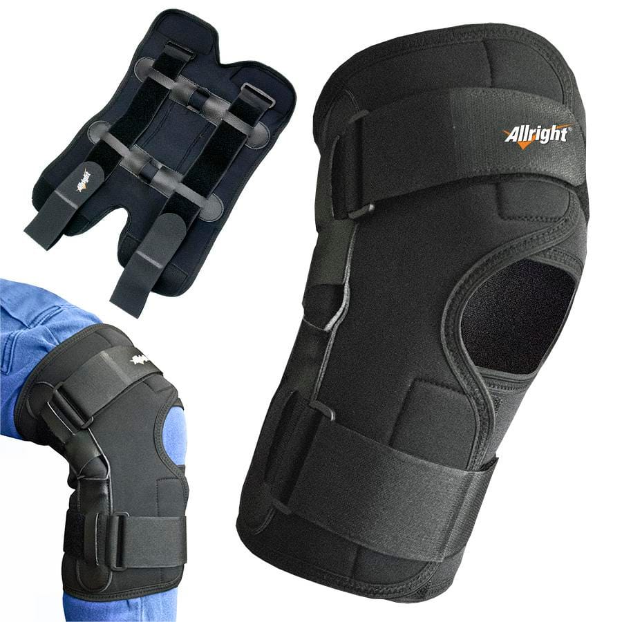 Neoprenowa opaska ALLRIGHT z dwoma elastycznymi paskami na rzepy oraz z listwami usztywniającymi staw. Owal piankowy wokół rzepki zapewnia komfort podczas noszenia, zapobiega otarciom, nie krępuje ruchów, stabilizuje rzepkę. Dzięki zastosowaniu neoprenu stabilizator kolana pozwala także na utrzymanie optymalnej temperatury ciała, przez co rozgrzewa układ stawowo – mięśniowy i więzadłowy. Prawidłowe dopasowanie ściągacza do kolana użytkownika reguluje nacisk na staw, odpowiednio go stabilizuje i odciąża np. podczas aktywności sportowej/ruchowej. Opaska ta doskonale sprawdza się także podczas leczenia skręceń, urazów i zwichnięć. Jest niezawodna w bólowych zespołach pourazowych lub zaburzeniach reumatycznych. - Stabilizuje i zapewnia ochronę kolana- Pomaga zmniejszyć ból- Neopren pokryty rozciągliwym nylonem, parciane rzepy- Listwy stabilizujące- Kolor: czarny- Rozmiar: uniwersalny