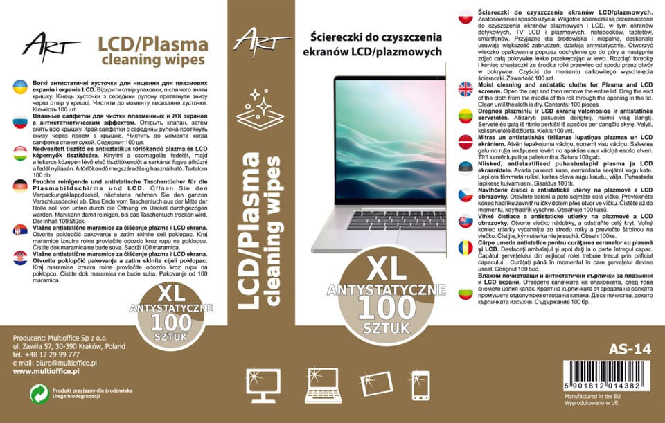 ŚCIERECZKI XL DO CZYSZCZENIA EKRANÓW LCD/TFT 100SZT AS-14 ART