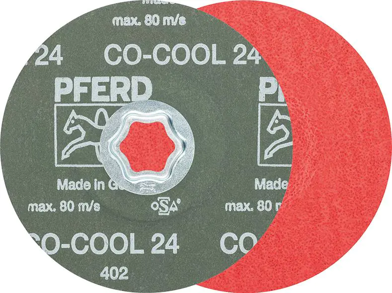 Korund CO-COOL Wykonanie: materiał ścierny ziarno ceramiczne (CO-COOL). Szlifowanie agresywne z najwyższą wydajnością ścierania. Stała wysoka wydajność dzięki samoostrzeniu ziarna ceramicznego. Aktywne składniki w spoiwie tarczy powodują widoczne zwiększenie wydajności ścierania, zapobiegają zapychaniu i zapewniają chłodniejszy szlif. Zastosowanie: do uniwersalnych prac szlifierskich od szlifowania precyzyjnego do bardzo precyzyjnego na twardych, źle przewodzących ciepło materiałach, np. stali szlachetnej i aluminium.