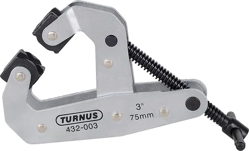 Wykonanie: ramiona z wysokogatunkowej stali, ruchome szczęki mocujące ze stali hartowanej. Wrzeciono z oksydowanym gwintem trapezowym i uchwytem z przetyczką.