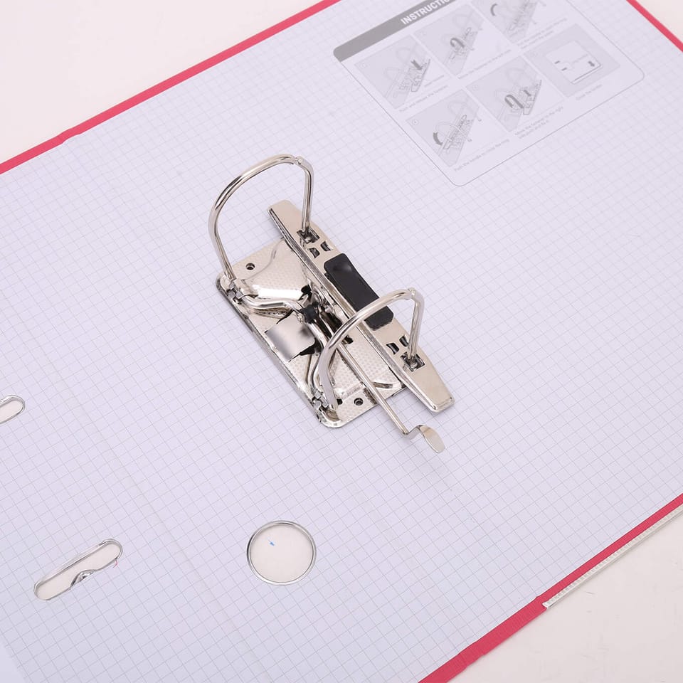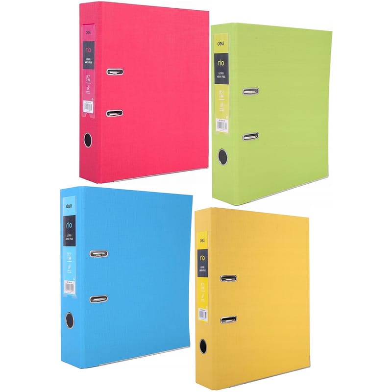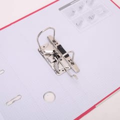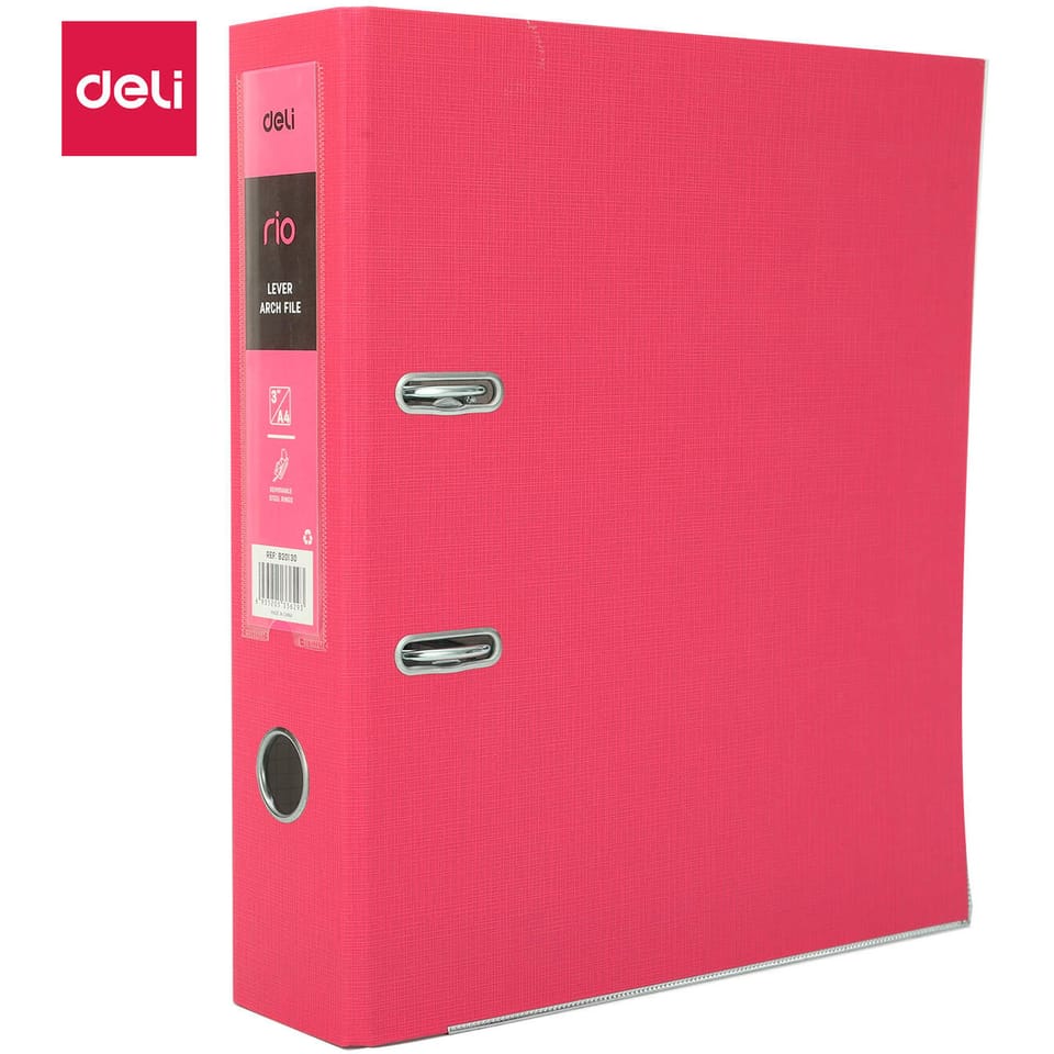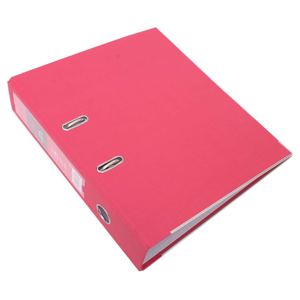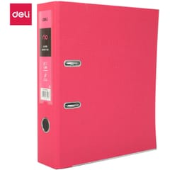Czerwony segregator marki Deli mieszczący dokumenty o wielkości A4. Segregator posiadający okrągłe wycięcie, dzięki czemu łatwo wyjmiesz go z szafki, posiada także wymienna etykietę która daje Ci możliwość dowolnego podpisania segregatora oraz wymiany jego zawartości wraz z ponownym, nowym jego podpisaniem. Środek w kratkę, materiał wykonania to karton oraz nawierzchnia powlekana materiałem polipropylenowym.Metalowe wstawki na bokach segregatora, które sprawiają, że materiał wolniej się zużywa. Na przodzie dwie dziury, które ukazują dźwignie segregatora.