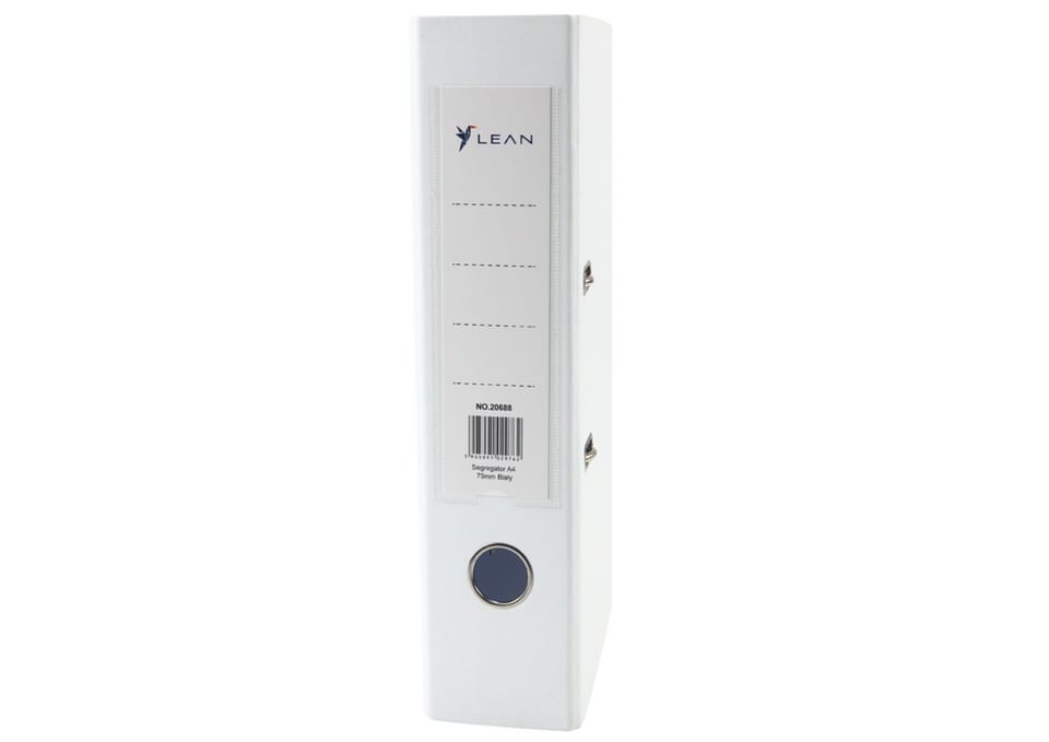 Segregator na dokumenty A4 z szerokim grzbietem 75 mm w eleganckim, czystym białym kolorze. Idealny do przechowywania dokumentów w biurze, domu oraz do organizacji materiałów szkolnych. Ten pojemny segregator mieści do 500 kartek (o gramaturze 80g/m²), co czyni go świetnym rozwiązaniem do archiwizacji faktur, umów, raportów i innych istotnych dokumentów. Wysoka jakość wykonania sprawia, że segregator jest niezawodny i trwały.