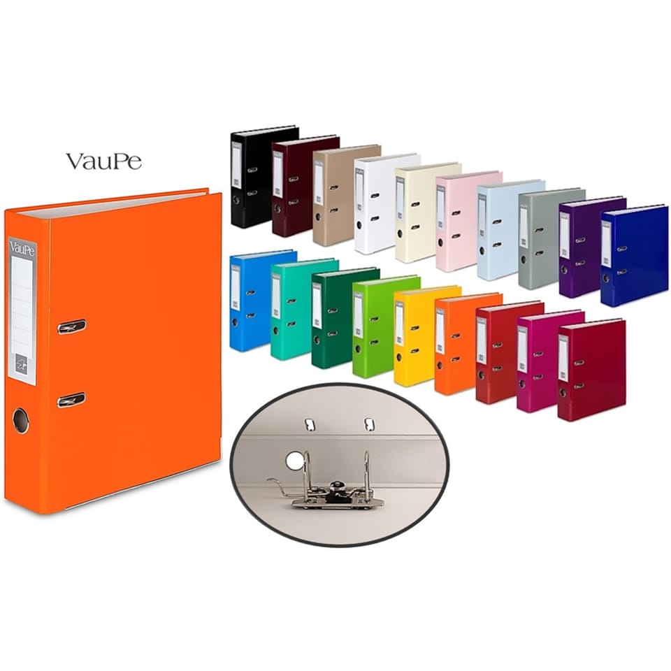 * Format: A4 * Rodzaj mechanizmu: Dźwigniowy * Szerokość grzbietu: 50 * Rodzaj: Biurowe * Grupa jakościowa: Standardowa * Marka: VAU-PE * Klasyczny segregator FCK marki VauPe. * Wykonany z twardej tektury o grubości 2 mm, pokrytej połyskową polipropylenową na zewnątrz, a wnętrze pokryto praktycznym papierem, odpornym na zabrudzenia. * Posiada niezawodny i zaawansowany mechanizm dźwigniowy z dociskiem, gwarantujący komfort i szybkość pracy z segregacja dokumentów. * Segregator posiada funkcjonalny otwór na palec dzięki czemu bez trudu wyjmiemy go z półki czy szafki, a specjalnie zaprojektowane okucia na przedniej okładce zapobiegają samoistnemu otwieraniu się segregatora. * Dolne krawędzie z metalowymi okuciami, zabezpieczającymi powierzchnię segregatora przed ścieraniem się.
