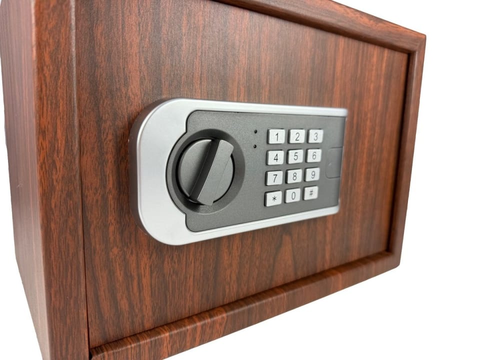 Sejf posiada podwójny system zabezpieczeń: można go otworzyć za pomocą kodu szyfrowego lub tradycyjnego klucza (oba sposoby są dostępne równolegle). Dodatkowo, możliwy jest montaż do ściany lub podłogi – w zestawie znajdują się 4 kołki montażowe, a sejf ma fabrycznie przygotowane otwory.