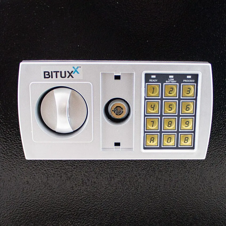 Solidny sejf elektroniczny idealny do zabezpieczenia ważnych dokumentów, kosztowności. Posiada otwory umożliwiające przymocowanie go do ściany lub podłogi. Wyposażony w półkę z możliwością demontażu. Sejf można otwierać poprzez zamek elektroniczny lub klucz. Niezwykle wytrzymały podwójny zamek.