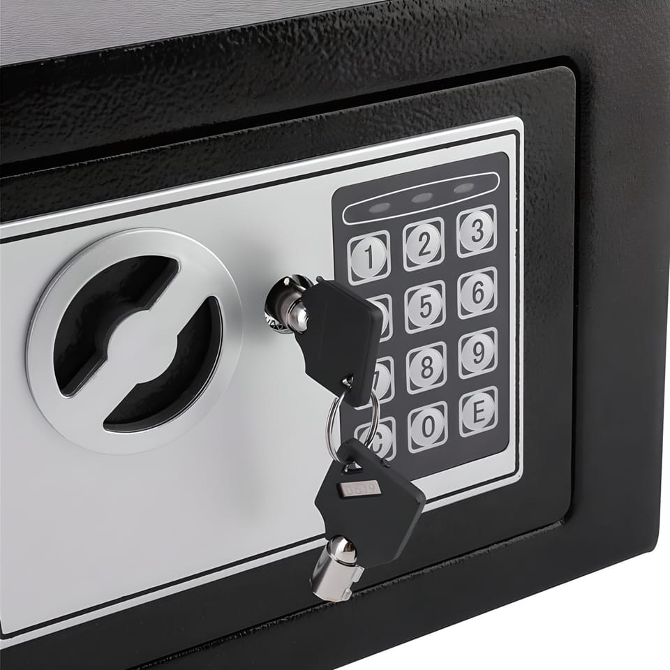 Kod produktu: 1029534Sejf elektroniczny to idealne rozwiązanie do bezpiecznego przechowywania danych i informacji w formie elektronicznej. Doskonale zabezpiecza poufne przedmioty, takie jak hasła, klucze, dokumenty oraz inne cenne przedmioty, chroniąc je przed nieuprawnionym dostępem. Sejf można otwierać be zużycia klucza. Wystarczy, że wcześniej ustawisz swój kod PIN. Pin powinien mieć od 3 do 8 znaków. Urządzenie posiada 3 diody które oznaczają: czerwona - niski stan baterii, zielona - hasło jest poprawne, dioda żółta - hasło jest niepoprawne. Konstrukcja korpusu sejfu została wykonana z litej stali o grubości 2mm, natomiast drzwi frontowe to stal o grubości 4 mm. Sejf został wykonany w taki sposób aby chronić twoje najbardziej cenne przedmioty przed nieproszonymi gośćmi.Cechy produktu: