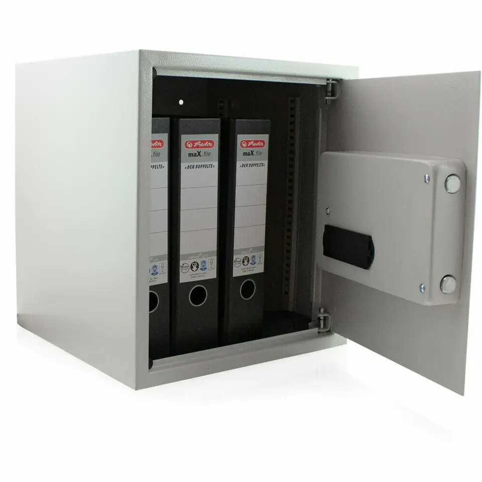 Chroń swoje oszczędności w domu jak i w firmie, dzięki Naszej szafie pancernej wykonanej z grubej stali! Korpus sejfu jest o grubości 2 mm, a jego drzwiczki to aż 4 mm co świadczy o jego solidności. Dzięki otworom w kasecie mamy możliwość przytwierdzenia do podłoża lub ściany. Warto zwrócić uwagę na wagę tego sejfu to aż 13,5 kg, co również potwierdza jego dobre wykonanie z grubszej blachy, a dodatkowo posiada zamek elektroniczny co ułatwi otwieranie szafy według zapotrzebowania.