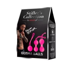 Sekrecik Stifler's Collection kulki gejszy (P1)5905669259620Kulki gejszy zostały stworzone z doskonałej jakości specjalnego silikonu. Zainstalowane w środku stalowe kulki mają za zadanie sprawić dużą przyjemność swoim drżeniem, do którego dochodzi podczas ruchu. Wytrenowane mięśnie dnia miednicy potrafią sprawić większą rozkosz mężczyźnie, a także kobiecie podczas seksu. Ponadto mięśnie dna miednicy są odpowiedzialne za trzymanie narządów rodnych kobiety na swoim miejscu, a także za trzymanie moczu, z czym mogą pojawić się problemy np. po ciąży.TreningTrening polega na wprowadzeniu kulek do pochwy i noszeniu ich podczas codziennych czynności. Dla lepszych efektów treningu z użyciem kulek zaleca się wykonywanie ruchów miednicą przód, tył i na boki. Do rozedrgania kulek wystarczy energiczny chód. Dobrze jest z nimi uprawiać bieg, taniec lub zajęcia fitness. Rozpoczyna się od kilku, kilkunastu minut dziennie, a po przyzwyczajeniu się do ciężaru kulek można dojść do 2-3 godzin dziennie. Kobiety z wrażliwą na stymulację pochwą mogą dodatkowo odczuwać niezwykłą przyjemność ze stosowania kulek.Polecane przez specjalistówKulki waginalne zalecane są bardzo często przez położne, ginekologów i seksuologów, ponieważ pomagają przywrócić sprawność mięśni dna miednicy potocznie nazywanymi mięśniami Kegla. Po porodzie pomagają utrzymać w dobrej kondycji mięśnie dna miednicy. Regularne treningi przy użyciu kulek w znaczący sposób podnoszą komfort współżycia seksualnego - podczas stosunku waginalnego kobieta intensywniej odbiera bodźce seksualne równie intensywnych bodźców dostarcza partnerowi. Kulki zapewniają maksimum bezpieczeństwa stosowania. Są pokryte specjalnym silikonem, który jest bezzapachowy, nie klejący i miły w dotyku, łatwo przyjmuje temperaturę ciała.Zestaw ten składa się z dwóch podwójnych kulek o różnym rozmiarze i wadze oraz jednej pojedynczej.nbsp