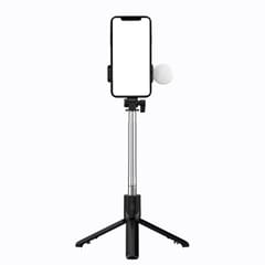 - - Selfie stick teleskopowy z pilotem + lamkpa LED stojak tripod na telefon 1m - czarny
