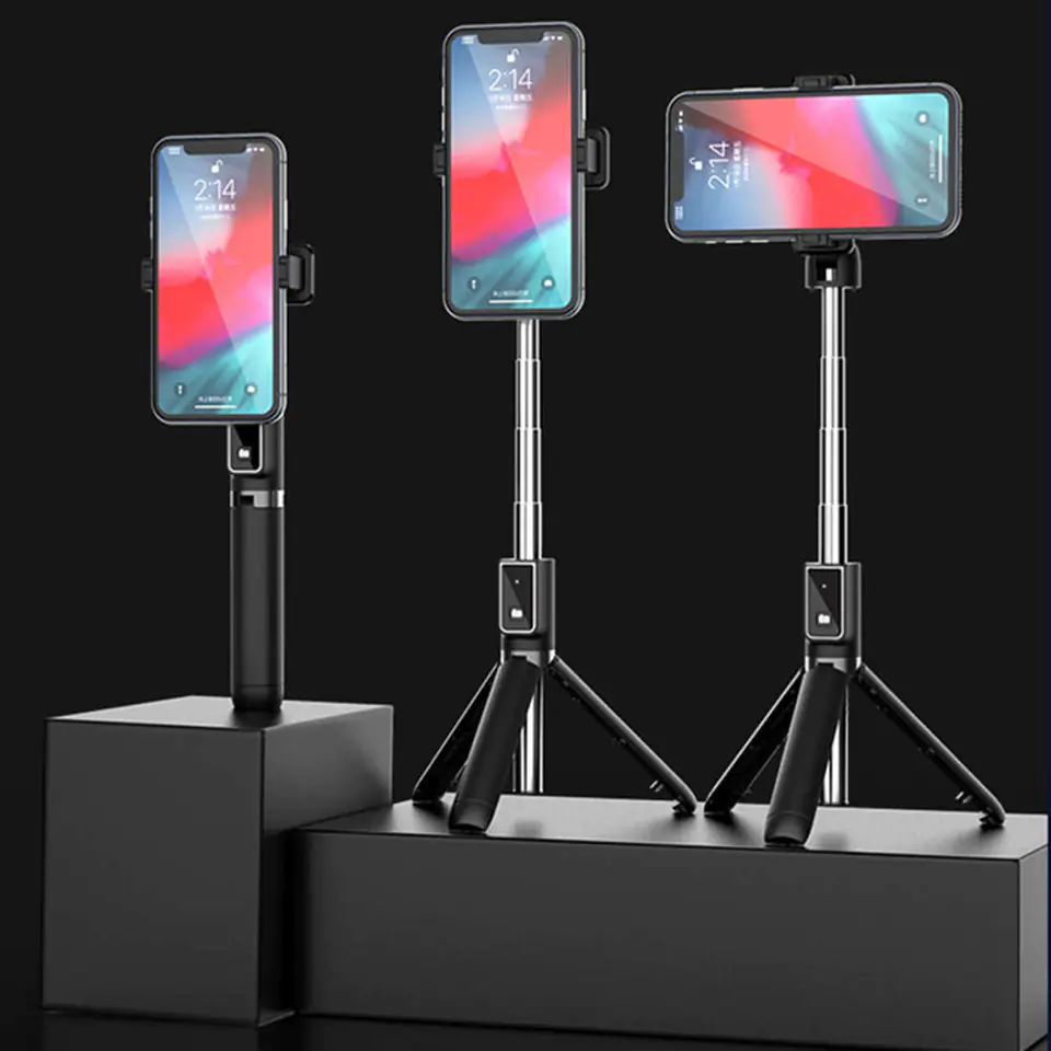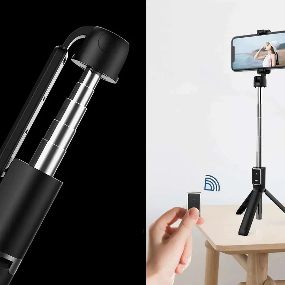 Selfie Stick posiada 3 nóżki, które po rozłożeniu tworzą stabilny statyw.