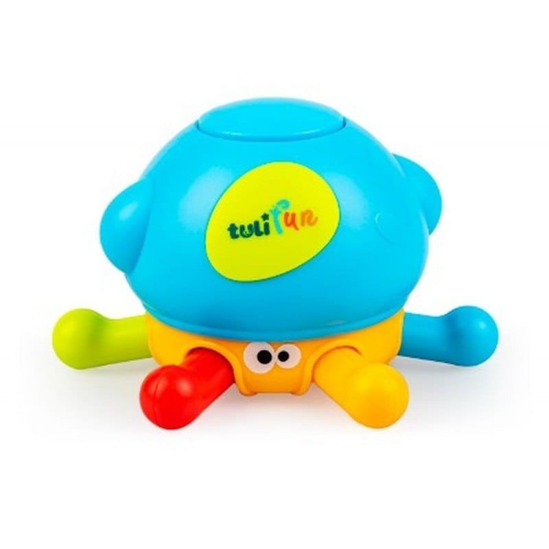 Zabawka Sensoryczna - Ośmiornica Kompaktowa ośmiornica wydaje wesołe dźwięki, które zabawią malucha. Na czubku jej głowy znajduje się ukryta piszczałka. Ramiona ośmiornicy można odginać, której to czynności towarzyszy zabawne terkotanie. Terkocze też sama głowa ośmiornicy , podczas przekręcania jej dookoła własnej osi. Kształt zabawki dostosowany jest do małych rączek, co czyni ośmiorniczkę wymarzonym towarzyszem pierwszych, sensorycznych zabaw, zarówno w domu, jak i w podróży. Cechy produktu: - terkotanie; - obrotowa głowa; - piszczałka; - odginane ramiona; - kształt dostosowany do małych rączek; Wiek: 3m+