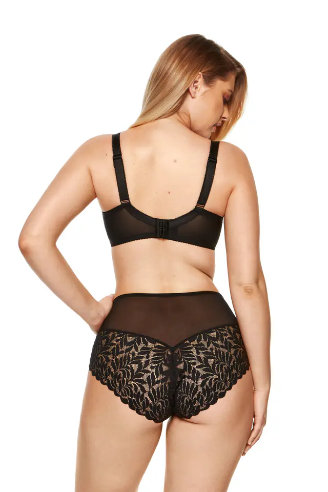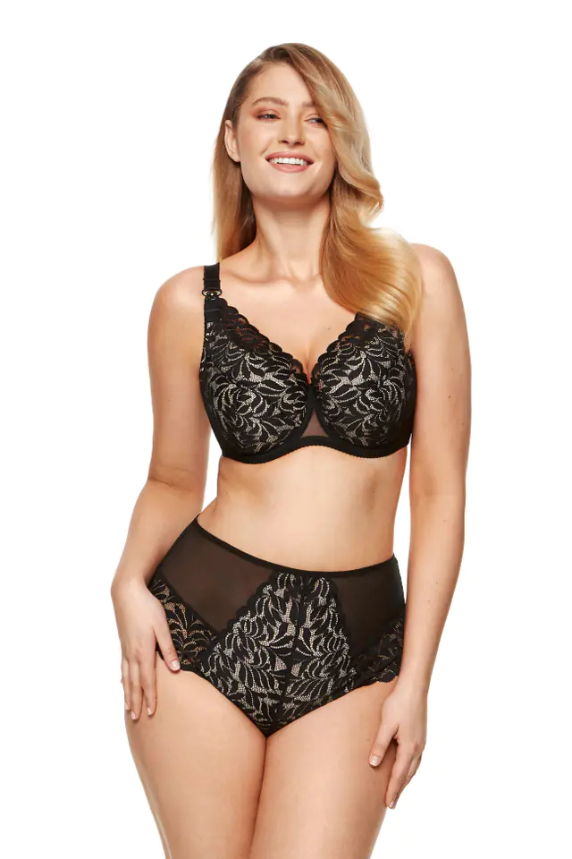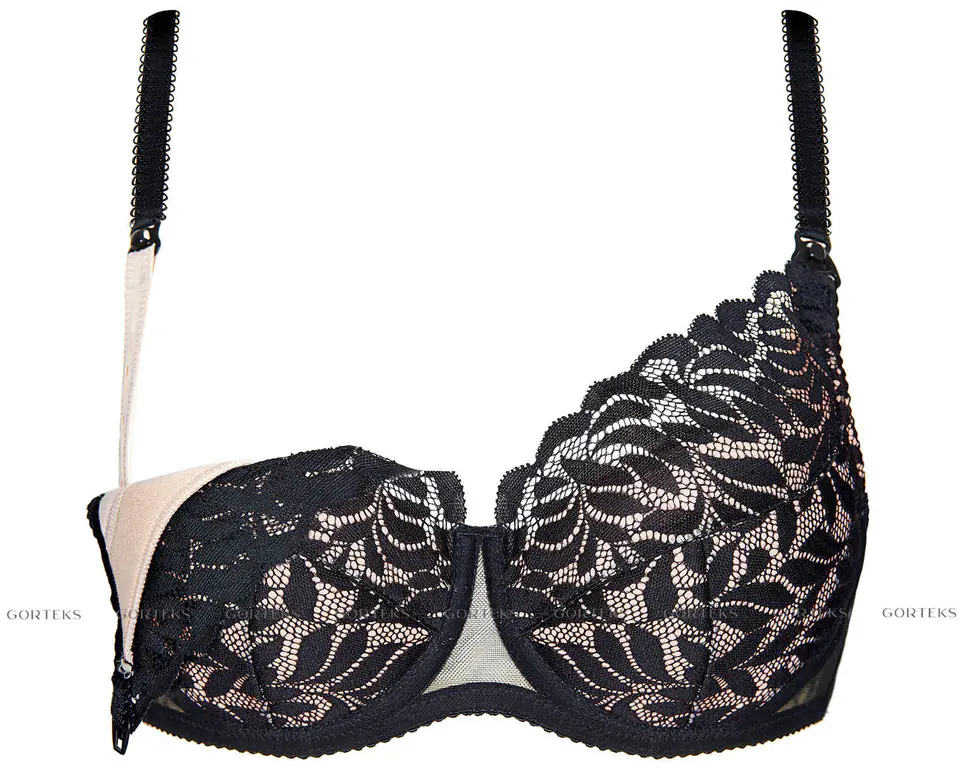 - Solidne zapięcia z przodu nad obiema miseczkami umożliwiające karmienie bez zdejmowania biustonosza,