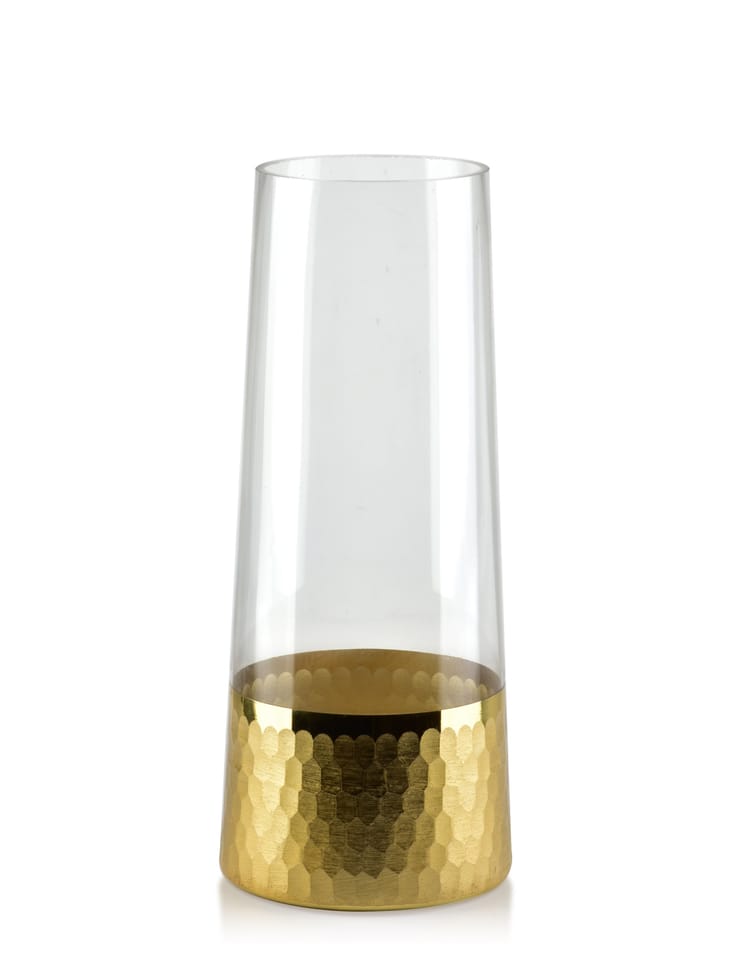 Wazon szklany Serenite marki MONDEX since 1986r. Posiada skośny kształt tuby ze zdobieniem w dolnej cześci w złote łuski. W dzisiejszych czasach wazonto nie tylko naczynie na kwiaty, ale także wyjątkowa ozdoba wnętrza. Świeże cięte kwiaty, a także sztuczne sprawiają, że wnętrze jest przyjemniejsze i w niektórychprzypadkach może mieć duży wpływ na nasze nastawienie. Kwiaty są zawsze dobrym pomysłem na prezent, a na pewno sprawią dużo radości wręczone wraz z wazonem. Kolekcja SERENITE została stworzona aby umilać codzienność, wyjątkowy kształt wazonów, a także ich kolorystyka świetnie wpisują się w trendy, a zarazem są ponadczasowe. Nowe szkło do domu to zawsze dobry pomysł.Tak niewiele trzeba, aby stół, komoda czy szafka nocna nabrały innego wymiaru i cieszyły oko.Warto zawsze łączyć poszczególne elementy kolekcji ze sobą. wymiary: 10xh25cm biały kartonik: 10x10xh25,5cm średnica otworu: 7,5cm z rantem 8cm waga:430g
