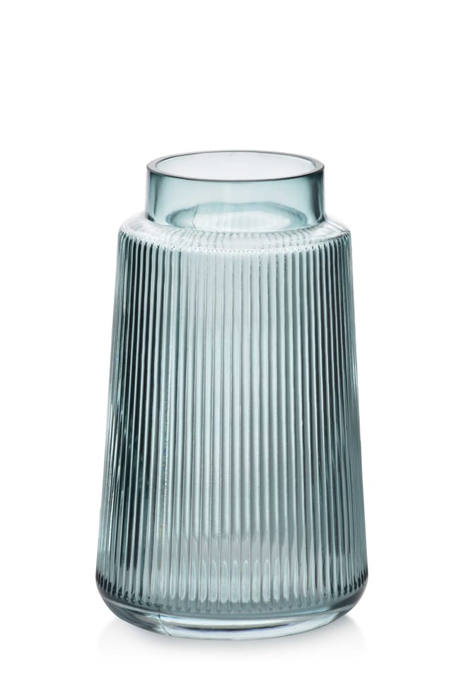 Wazon szklany Serenite marki MONDEX since 1986r. Utrzymany w kolorystyce szaro niebieskiej w tłoczeniem w pionowe paski. W dzisiejszych czasach wazon to nie tylko naczynie na kwiaty, ale także wyjątkowa ozdoba wnętrza. Świeże cięte kwiaty, a także sztuczne sprawiają, że wnętrze jest przyjemniejsze i w niektórychprzypadkach może mieć duży wpływ na nasze nastawienie. Kwiaty są zawsze dobrym pomysłem na prezent, a na pewno sprawią dużo radości wręczone wraz z wazonem. Kolekcja SERENITE została stworzona aby umilać codzienność, wyjątkowy kształt wazonów, a także ich kolorystyka świetnie wpisują się w trendy, a zarazem są ponadczasowe. Nowe szkło do domu to zawsze dobry pomysł.Tak niewiele trzeba, aby stół, komoda czy szafka nocna nabrały innego wymiaru i cieszyły oko.Warto zawsze łączyć poszczególne elementy kolekcji ze sobą. wymiary: 11,5xh20cm biały kartonik: 12,5x12,5xh21cm średnica otworu: 7cm waga:810g