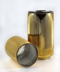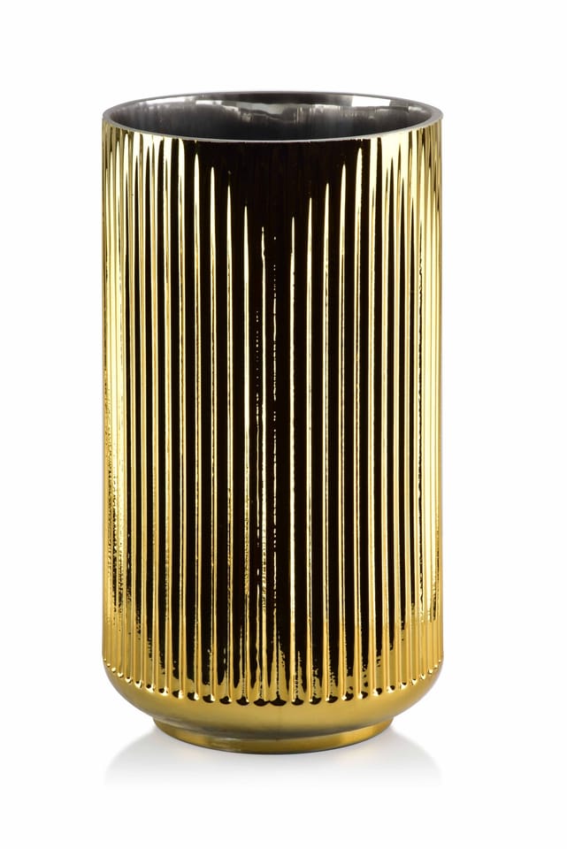 Wazon szklany Serenite marki MONDEX since 1986r. Utrzymany w kolorystyce złotej w tłoczeniem w pionowe paski. W dzisiejszych czasach wazon to nie tylko naczynie na kwiaty, ale także wyjątkowa ozdoba wnętrza. Świeże cięte kwiaty, a także sztuczne sprawiają, że wnętrze jest przyjemniejsze i w niektórychprzypadkach może mieć duży wpływ na nasze nastawienie. Kwiaty są zawsze dobrym pomysłem na prezent, a na pewno sprawią dużo radości wręczone wraz z wazonem. Kolekcja SERENITE została stworzona aby umilać codzienność, wyjątkowy kształt wazonów, a także ich kolorystyka świetnie wpisują się w trendy, a zarazem są ponadczasowe. Nowe szkło do domu to zawsze dobry pomysł.Tak niewiele trzeba, aby stół, komoda czy szafka nocna nabrały innego wymiaru i cieszyły oko.Warto zawsze łączyć poszczególne elementy kolekcji ze sobą. wymiary: 12,2x12,2xh22,5cm biały kartonik: 13x13xh24cm średnica otworu: 12cm waga:1,140kg