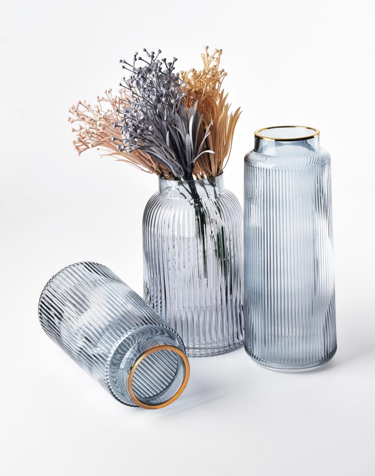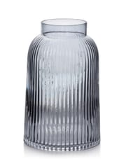 Wazon szklany Serenite marki MONDEX since 1986r. Utrzymany w kolorystyce szarej w tłoczeniem w pionowe paski. W dzisiejszych czasach wazonto nie tylko naczynie na kwiaty, ale także wyjątkowa ozdoba wnętrza. Świeże cięte kwiaty, a także sztuczne sprawiają, że wnętrze jest przyjemniejsze i w niektórych przypadkach może mieć duży wpływ na nasze nastawienie. Kwiaty są zawsze dobrym pomysłem na prezent, a na pewno sprawią dużo radości wręczone wraz z wazonem. Kolekcja SERENITE została stworzona aby umilać codzienność, wyjątkowy kształt wazonów, a także ich kolorystyka świetnie wpisują się w trendy, a zarazem są ponadczasowe. Nowe szkło do domu to zawsze dobry pomysł.Tak niewiele trzeba, aby stół, komoda czy szafka nocna nabrały innego wymiaru i cieszyły oko.Warto zawsze łączyć poszczególne elementy kolekcji ze sobą. wymiary: 15xh23cm biały kartonik: 15x15xh24cm średnica otworu: 8cmwaga:1,168g