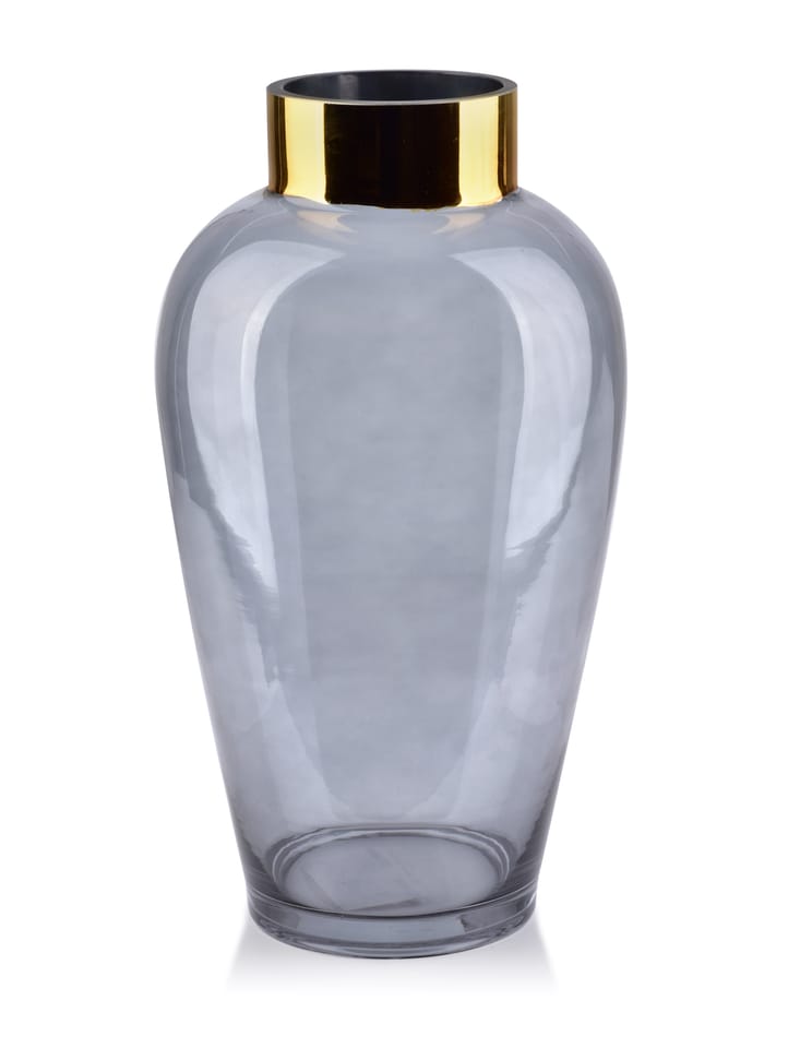 Wazon szklany Serenite marki MONDEX since 1986r. Utrzymany w kolorystyce szarego dymionego szkła ze złotą kalką u nasady wazonu. Przepiękny i nowoczesny. W dzisiejszych czasach wazon to nietylko naczynie na kwiaty, ale także wyjątkowa ozdoba wnętrza. Świeże cięte kwiaty, a także sztuczne sprawiają, że wnętrze jest przyjemniejsze i w niektórych przypadkach może mieć duży wpływ na nasze nastawienie. Kwiaty są zawsze dobrym pomysłem na prezent, a na pewno sprawią dużo radości wręczone wraz z wazonem. Kolekcja SERENITE została stworzona aby umilać codzienność, wyjątkowy kształt wazonów, a także ich kolorystyka świetnie wpisują się w trendy, a zarazem są ponadczasowe. Nowe szkło do domu to zawsze dobry pomysł.Tak niewiele trzeba, abystół, komoda czy szafka nocna nabrały innego wymiaru i cieszyły oko.Warto zawszełączyć poszczególne elementy kolekcji ze sobą. wymiary: 17xh32cm biały kartonik: 17,5x17,5xh33cm średnica otworu: 8cm średnica spodu: 11cm waga:1,202kg