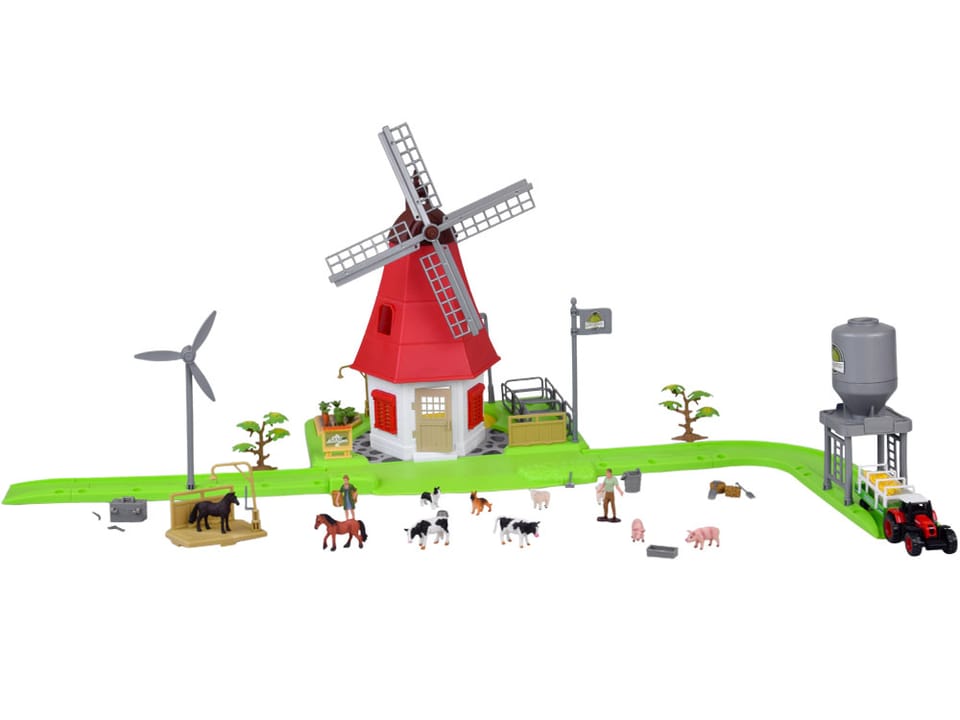Głównym elementem zestawu jest dwupiętrowy młyn. Do budynku prowadzą otwierane drzwi, a całość ozdabiają czerwone, zamykane okiennice. Tylna ściana nie jest zabudowana, więc mamy łatwy dostęp do wnętrza budowli. Na dachu znajdziemy 4 obracające się łopaty wiatraka. W otoczeniu młynu znajduje się ogródek uprawny oraz zagrody dla zwierząt hodowlanych. Wzdłuż ścieżki prowadzącej do młyna możemy postawić również dodatkowy wiatrak, drzewka ozdobne a także silos.