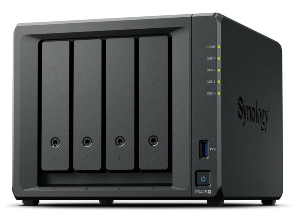 Synology Desktop, 4-BAY, QUAD CORE, 2GB RAM, DDR4 non-ECC SODIMM, upgradeable to 6 GB (2 GB + 4 GB)