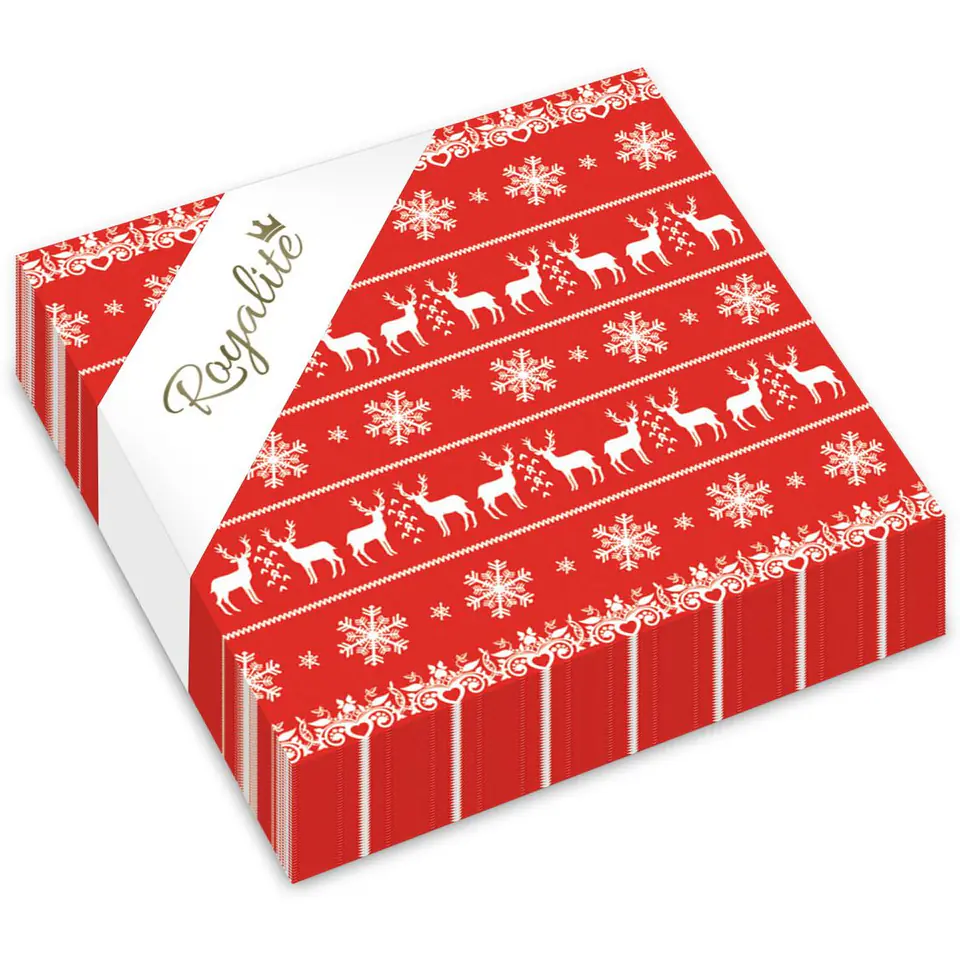 Serwetki BN 33x33 3w20 ŚNIEŻYNKI RENIFERY CZERWONE 9554213 HERLITZ