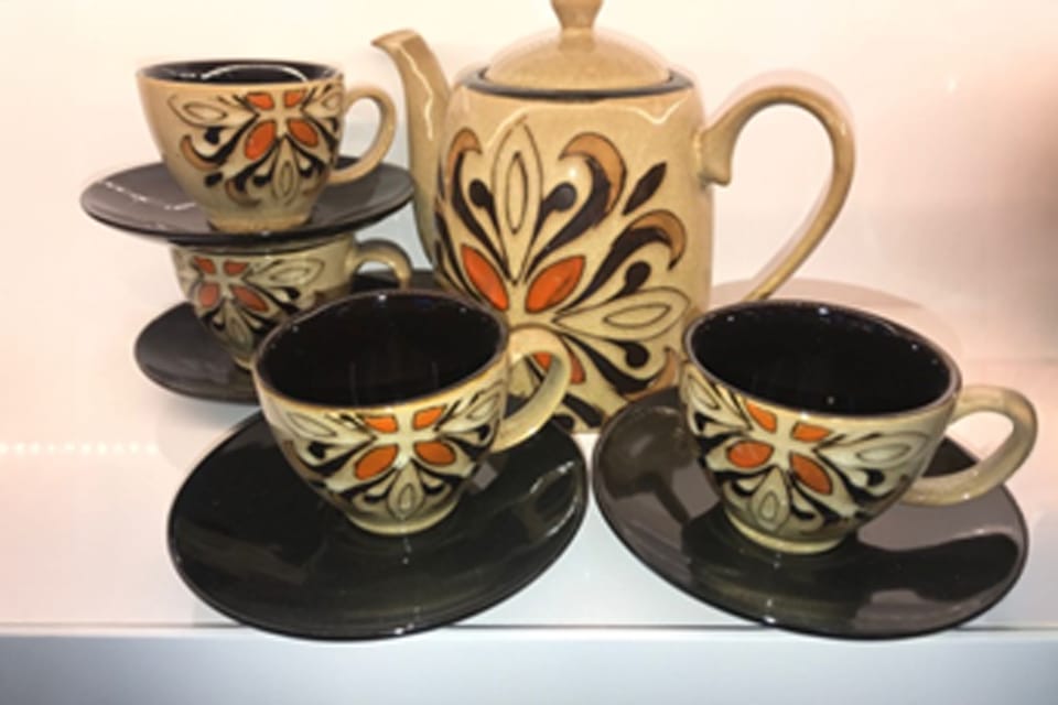 Serwis - czajnik i 4 filiżanki ze spodkami wzór do wyboru