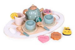 Ten zestaw przeniesie wszystkie dzieci w świat dorosłych i pozwoli na fantastyczną zabawę, w której może uczestniczyć cała rodzina. Zestaw zawiera wszystko to, co jest potrzebne do zorganizowania wyjątkowego popołudnia: dzbanek, filiżanki, talerzyki oraz praktyczną tackę. Ponieważ spotkanie przy herbacie, czy kawie nie może obejść się bez słodkości, dodatkowymi elementami zestawu są kolorowe, ciastka, torciki i babeczki, które zachwycają swoim realistycznym wyglądem. Dzięki tym kolorowym zabawkom, dziecko może wcielić się w rolę dorosłego i zaprosić na pyszną herbatę oraz słodkie przekąski. Poza dobrą zabawą, Twoja pociecha rozwinie wyobraźnię, zdolności manualne, a także dowie się jak przygotować pyszną herbatę, czy kawę i pozna zasady panujące przy stole.
