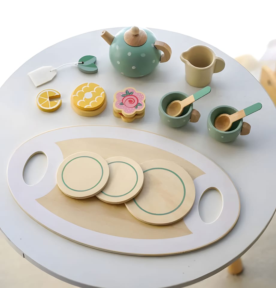 Nasz drewniany zestaw to więcej niż zwykła zabawka – to przemyślany dodatek, który doskonale uzupełnia każdą zabawkową kuchnię. Składający się z doskonale odwzorowanych akcesoriów - dzbanka, filiżanek, talerzyków oraz tacki, zestaw wzbogaci każdą kulinarną przygodę Twojego dziecka. Połączenie tego kompletu z zabawkowymi kuchniami pozwala na rozwijanie umiejętności społecznych i kreatywności, jednocześnie zapewniając dzieciom długie godziny pełne zabawy w przygotowywanie i serwowanie wyjątkowych, drewnianych przysmaków. To doskonały wybór dla wszystkich małych gospodarzy, którzy uwielbiają swoje kuchenne królestwo wyposażone w najlepsze akcesoria.