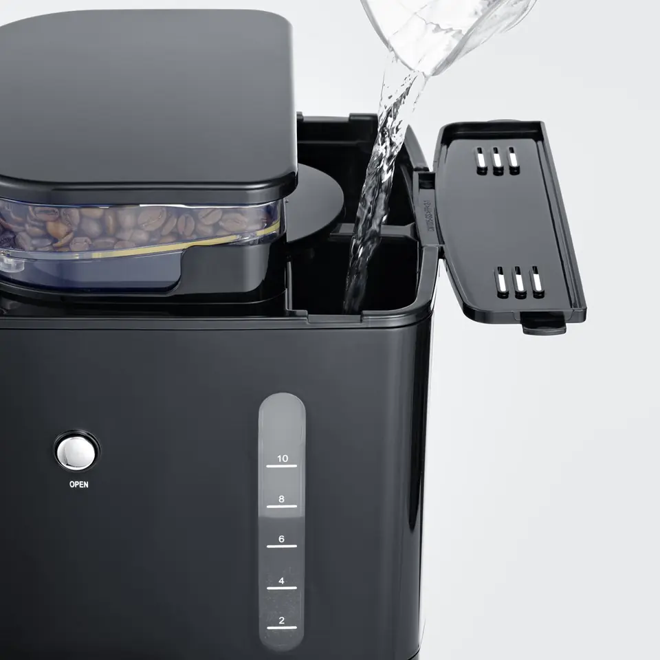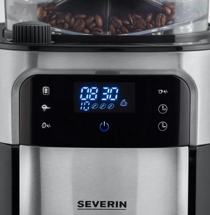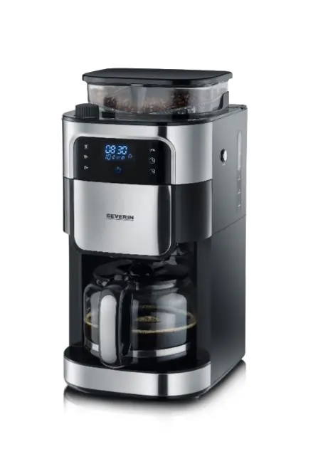 Severin KA 4813, Przelewowy ekspres do kawy, Ziarna kawy, Kawa mielona, Wbudowany młynek, 1000 W, Czarny, Stal nierdzewna