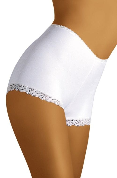 Wyższe szorty delikatnie modelujące rejon brzucha i bioder. Wykonane z dzianiny wysokiej jakości. Brzegi w uroczy sposób podkreślone koronkową lamówką. Skład: 83% poliamid, 17% elastan.