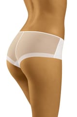 Efektowne shorty z półprześwitującym tyłem. Niby prosto, a jednak z charakterem! Przód gładki, klasyczny. Skład: 83% poliamid, 17% elastan (poliuretan).