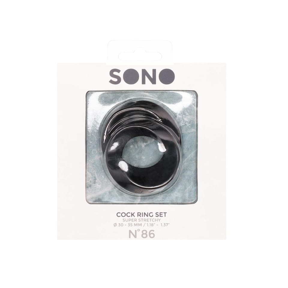 Model No.86 cechuje się wytrzymałą konstrukcją oraz gładką, bezpieczną powierzchnią, ktora ułatwia zakładanie i zdejmowanie. Średni pierścień przeznaczony jest do aplikacji na członku, natomiast większy może być wykorzystywany zarowno na członku, jak i w okolicy podstawy. Pierścienie mogą przyczynić się do poprawy komfortu podczas użytkowania oraz oferują wsparcie w codziennej pielęgnacji intymnej.