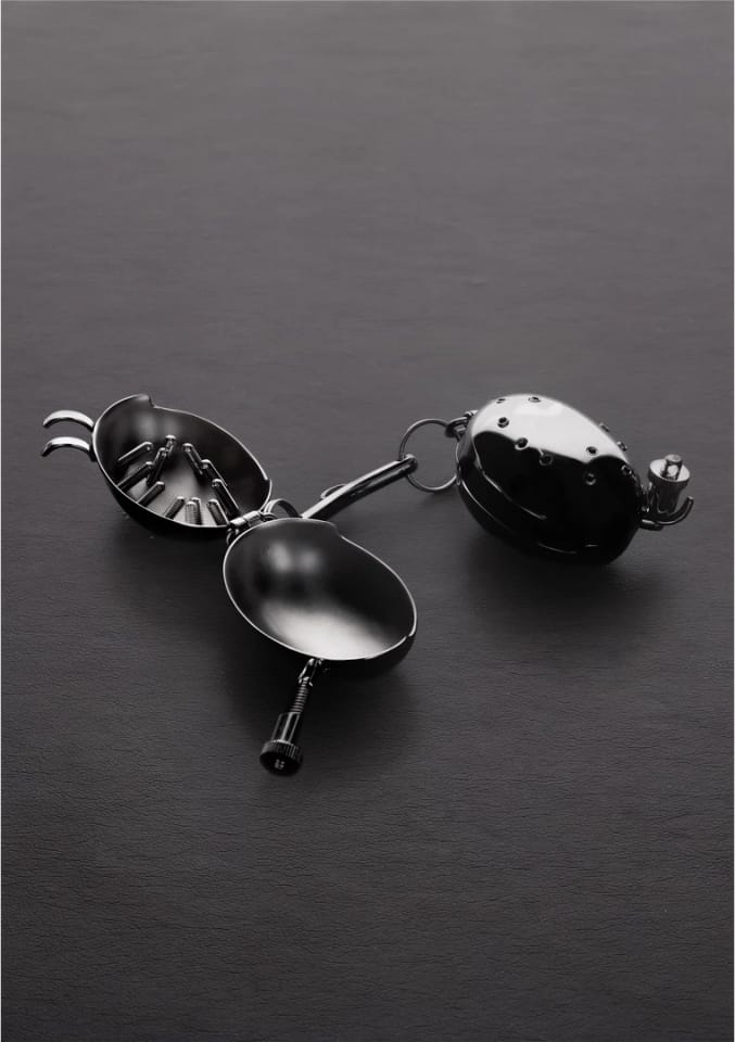 Stalowe elementy otulają każdą część osobno, umożliwiając precyzyjne dostosowanie poziomu zacisku i długości rozciągnięcia. Model Evil Shells łączy cechy rozciągacza kulowego oraz zacisku, zapewniając pełną kontrolę nad funkcjonalnością urządzenia. Gładka, łatwa w czyszczeniu powierzchnia oraz nowoczesny design sprawiają, że produkt ten wyrożnia się zarowno wyglądem, jak i możliwościami technicznymi.