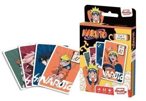 W naszych grach Shuffle 3w1 przenosimy zwykłą talię kart do innej przestrzeni. Najbardziej znane rozgrywki z Twoimi ulubionymi bohaterami z Naruto. Co więcej każda talia kart to godziny rozrywki, ponieważ możesz grać w cztery różne gry. Kwartet, gra akcji, Piotruś oraz Snap to przepis na brak nudy. Zawartość: 33 karty.