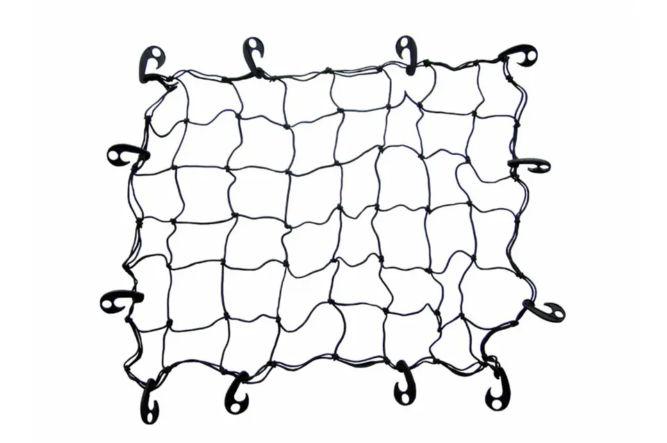 Siatka do mocowania bagażu Wymiary: 120x80 cm Elastyczna siatka do mocowania bagażu. Zamontowane haczyki dają wiele możliwości montażu siatki i pozwalają na dopasowanie jej do prawie każdego bagażnika. Doskonale stabilizuje przewożony ładunek i zwiększa bezpieczeństwo podróży, zapobiegając jego przemieszczaniu.
