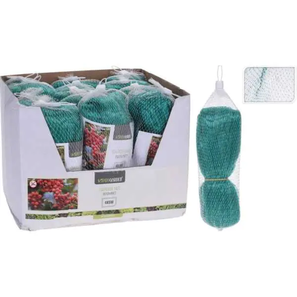 Siatka ochronna zielona przeciw ptakom 4x5 m Elastyczna siatka, która zabezpieczy Twoje drzewa owocowe i krzewy przez wyjadaniem przez ptaki malin, borówek, jeżyn, jabłek, wiśni, czereśni. Specyfikacja: wymiary: 4x5 m materiał: polietylen, kolor: zielony.