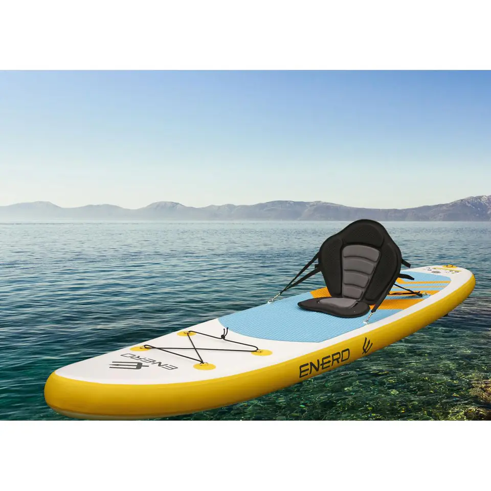 SIEDZISKO DO DESKI SUP KAJAKA NEOPRENOWE ENERO pozwala trenować lub relaksować się w bardzo wygodny, komfortowy sposób. Dzięki temu, że posiada oparcie, umożliwia wygodne wiosłowanie na siedząco.