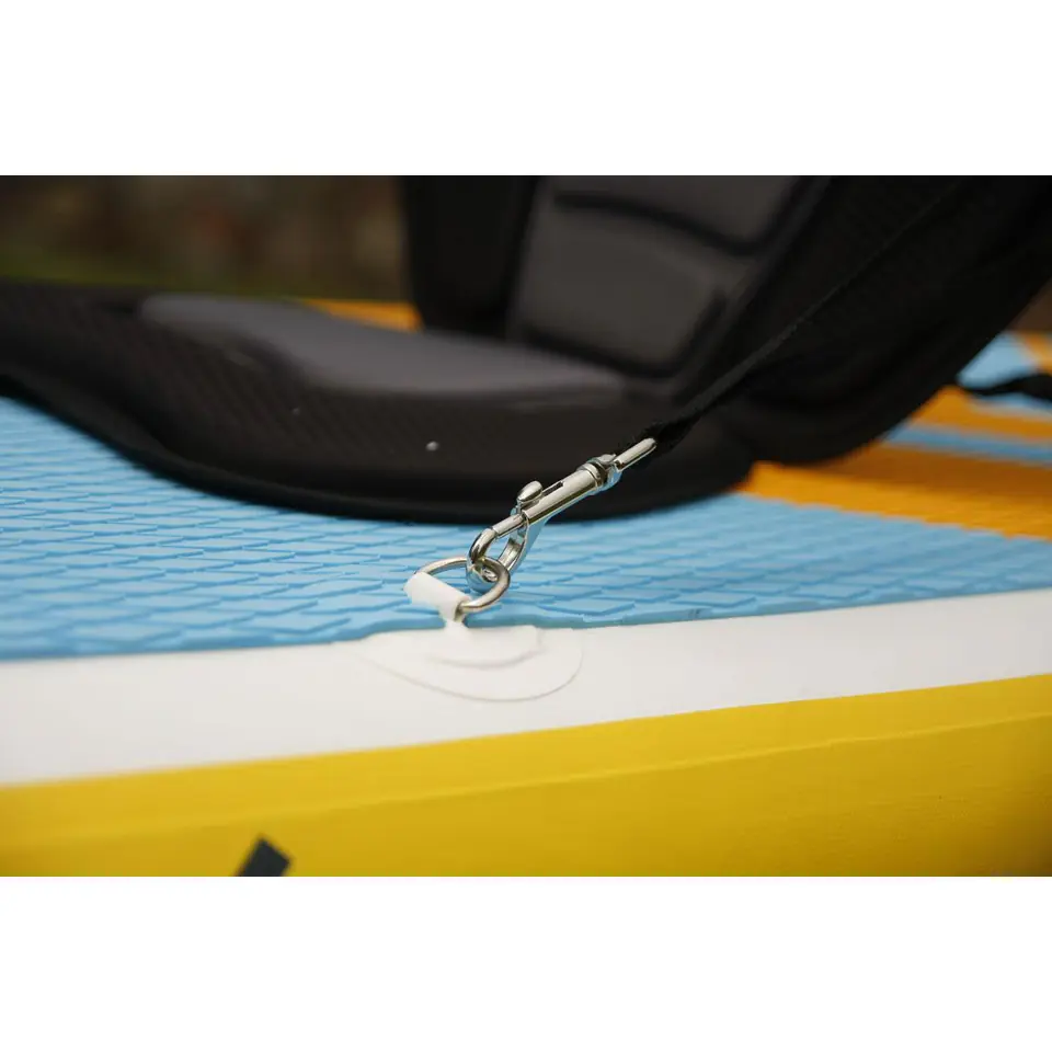 Montaż jest bardzo prosty i szybki, musisz mieć jednak deskę, która jest przystosowana do montażu siedziska kajakowego. Wystarczy wykorzystać fabrycznie zamontowane uchwyty i doczepić do nich siedzisko kajakowe. Proces ten nie zajmie więcej niż parę sekund.