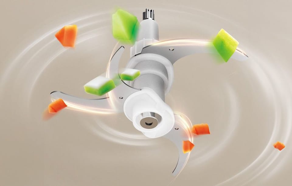 Deerma DEM-JR10W wyróżnia się czterolistnym ostrzem wirowym wykonanym ze stali nierdzewnej, które zapewnia trójwymiarowe, spiralne cięcie. Dzięki temu farsz mięsny jest wyjątkowo delikatny i pozbawiony gruboziarnistych cząstek, co przekłada się na doskonały smak i teksturę. Dodatkowo urządzenie oferuje regulowaną podwójną prędkość, umożliwiając elastyczne dostosowanie szybkości mielenia do różnych składników. Niezależnie od tego, czy potrzebujesz delikatnie posiekać warzywa, czy zmielić twardsze mięso, zawsze uzyskasz idealny efekt.