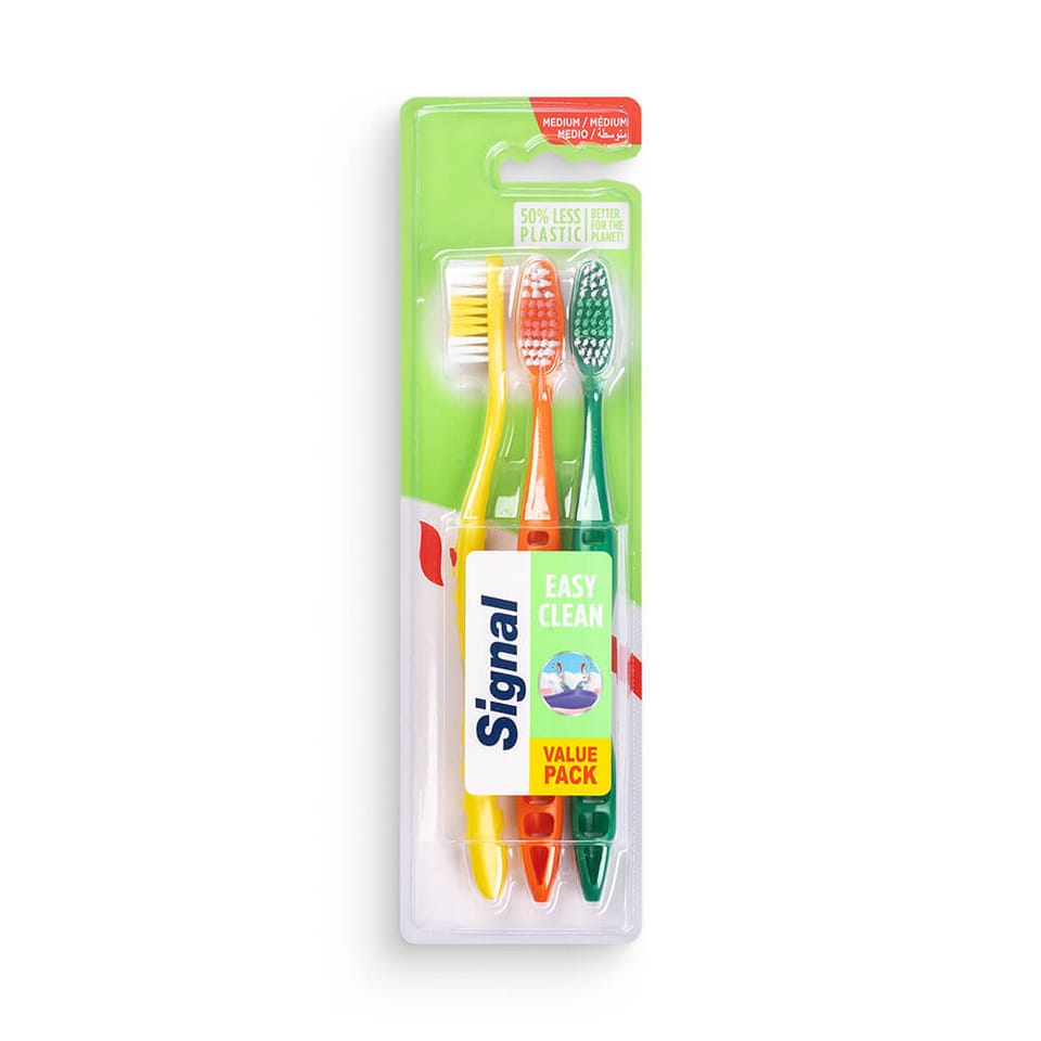Aby zachować dobry stan zdrowia, konieczna jest właściwa higiena jamy ustnej. Jest to efektowny model wyposażony w delikatne włosie o różnej długości. W ten sposób eliminuje płytkę nazębną, która generalnie prowadzi do różnego rodzaju problemów dentystycznych. Szczoteczka Easy Clean Medium Signal zapewnia również optymalne szczotkowanie, jednocześnie dbając o szkliwo i dziąsła.