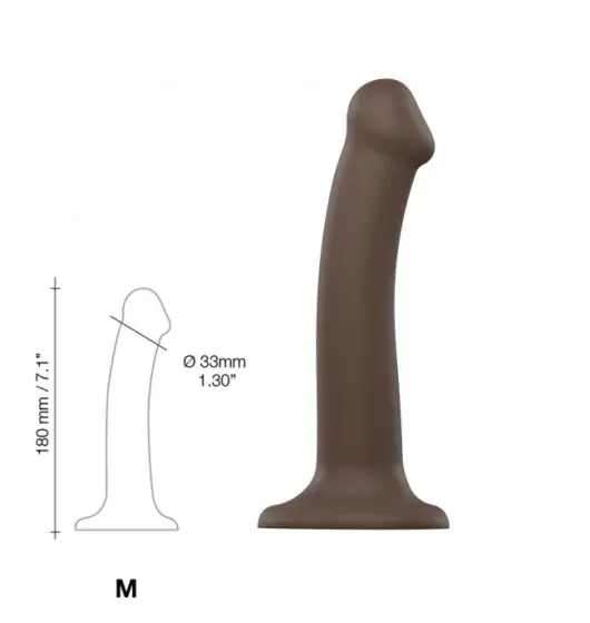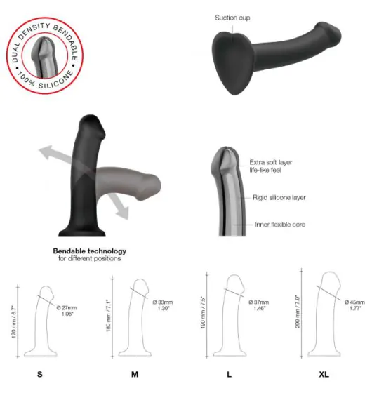 Wykonane z formowanego silikonu dildo marki Strap-On-Me o podwójnej gęstości, zachwyci Cię swoją miękkością i ultra-realistyczną teksturą. Dildo składa się z pierwszej warstwy miękkiego silikonu, zapewniającego efekt drugiej skóry, który pokrywa sztywniejszy rdzeń z pamięcią kształtu, zapewniając wyjątkowe doznania. Przyssawka w kształcie serca pozwala przyczepić go do wybranej gładkiej powierzchni, dzięki czemu możesz cieszyć się doznaniami solo bez użycia rąk. Aby dzielić się przyjemnością z partnerem, cała gama dild jest kompatybilna z uprzężami Strap-on-me.