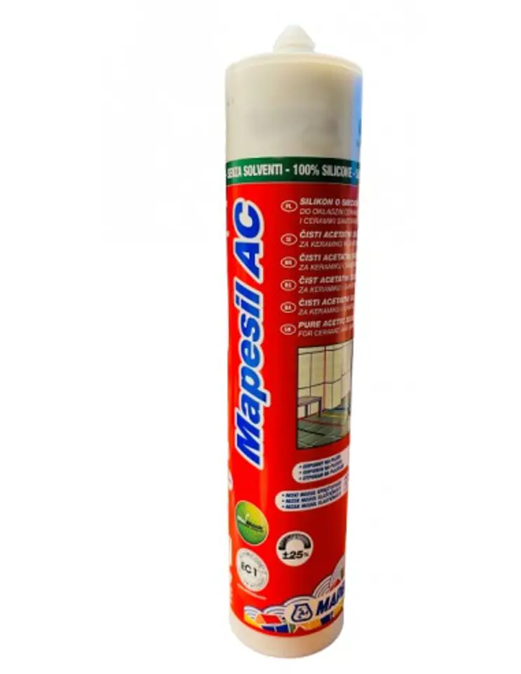 Bezrozpuszczalnikowy uszczelniacz silikonowy wysokiej odporności na pleśń. Mapesil AC jest masą silikonową na bazie kwasu octowego stosowaną do uszczelniania połączeń szkła, ceramiki i aluminium anodyzowanego. Po wstępnym zastosowaniu Primer FD może być również stosowany na betonie, drewnie, metalu, powierzchniach malowanych, plastiku, gumie.