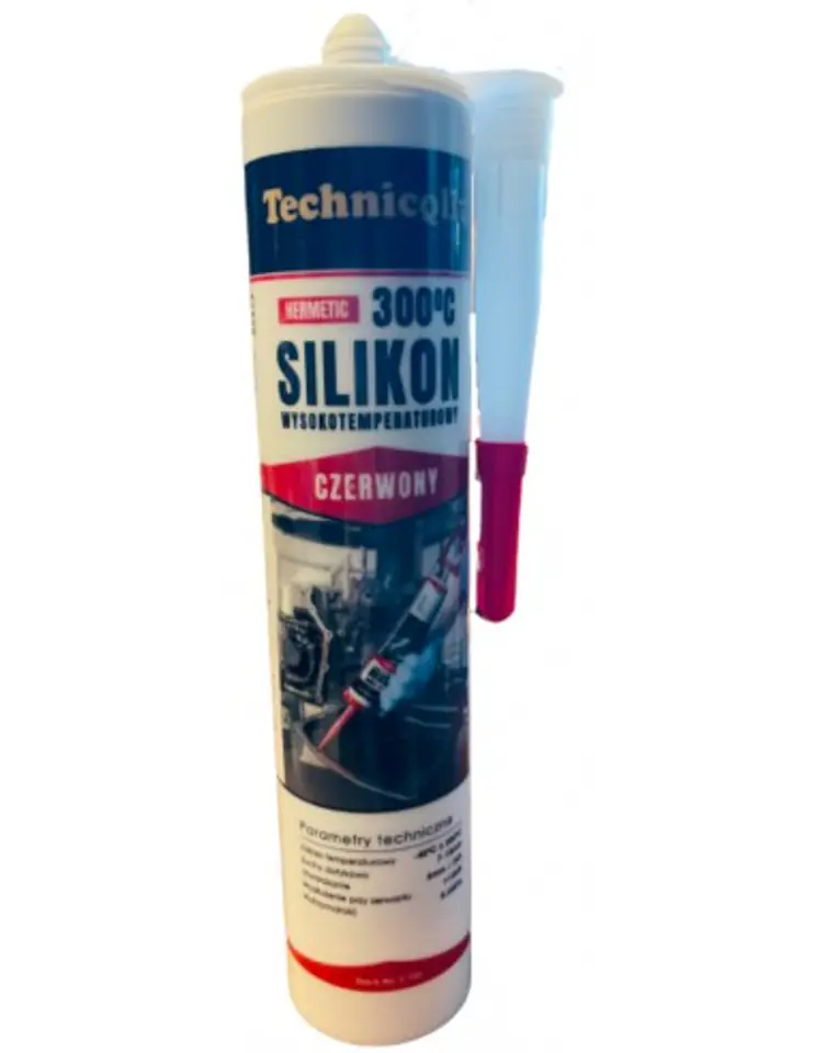Wysokiej jakości jednokomponentowy silikon wysokotemperaturowy w kolorze czerwonym. Utwardza się pod wpływem wilgoci tworząc elastyczną uszczelkę odporną na czynniki atmosferyczne i płyny eksploatacyjne. Inaczej nazywany płynna uszczelka. Stosowany głównie w motoryzacji do uszczelniania podzespołów silników.