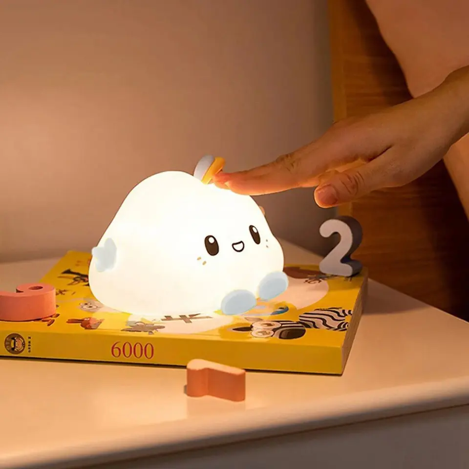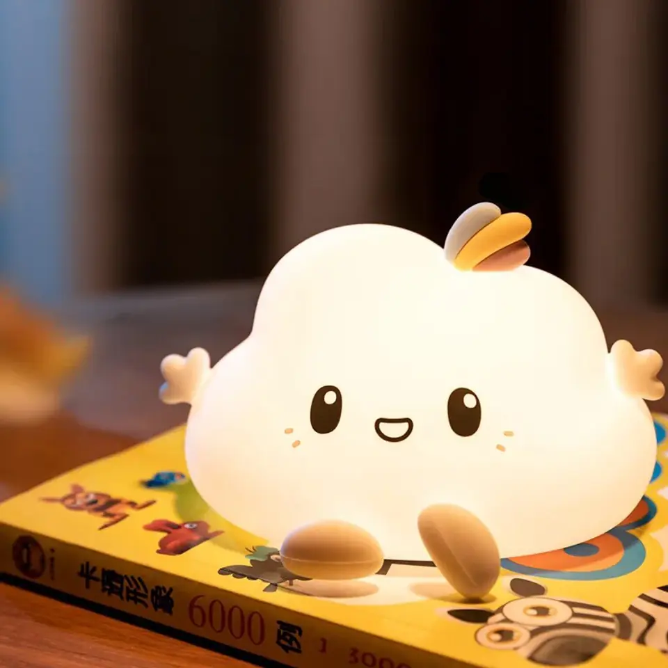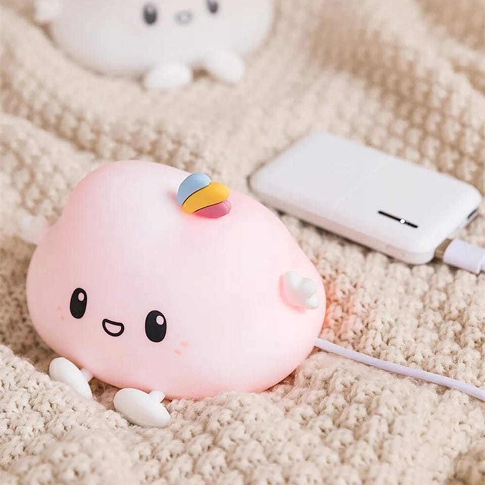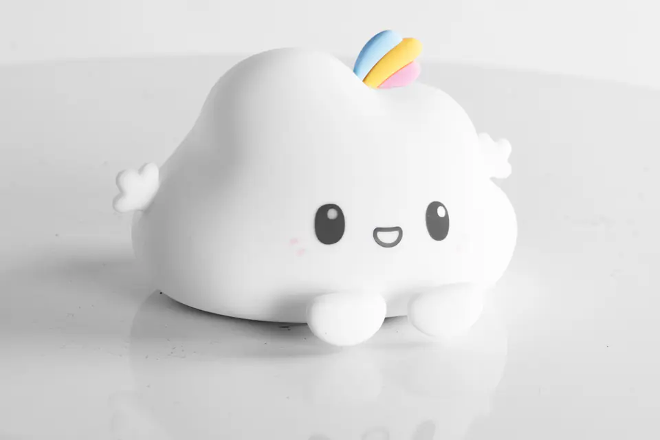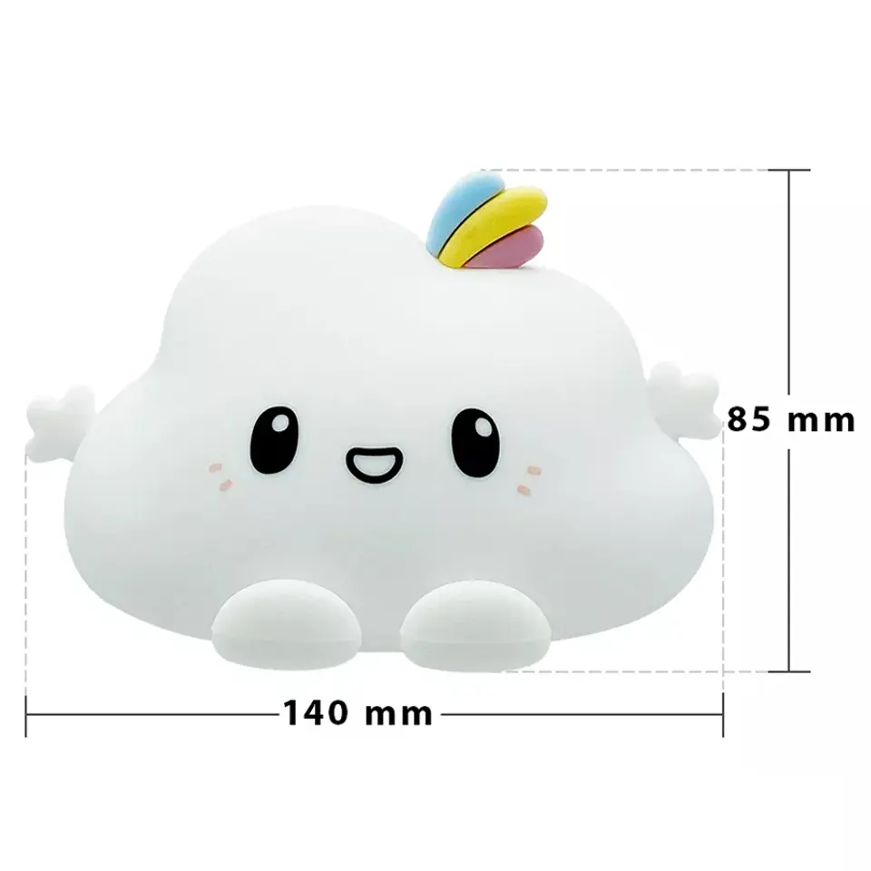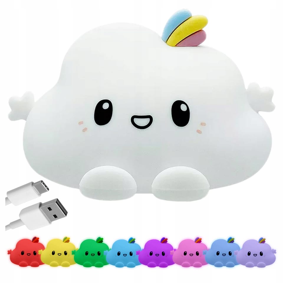 Nocna lampka led CHMURKA⭐️ Urocza lampka LED w kształcie chmurki⭐️ Wykonana z miękkiego silikonu⭐️ 16 kolorów RGB⭐️ Zasilanie akumulatorowe⭐️ Doskonała na prezent dla dzieci!⭐️ Zakup od producenta✨Lampka nocna Chmurka LED – Perfekcyjna do dziecięcego pokoju✨Lampka nocna Chmurka LED to bezpieczne, miękkie i delikatne źródło światła, które tworzy wyciszającą atmosferę i pomaga maluchom zasypiać spokojnie, bez lęku. Dzięki 16 kolorom RGB możesz dopasować jej odcień do humoru lub wystroju, a wbudowany akumulator sprawia, że nie musisz martwić się o wymianę baterii. Lampka jest stabilna, wyposażona w antypoślizgowe elementy i bardzo łatwa w obsłudze — zmiana koloru następuje po lekkim stuknięciu, co stanowi świetną zabawę dla dzieci w każdym wieku. Jej uroczy kształt i pastelowa stylistyka sprawiają, że pełni nie tylko funkcję oświetlenia, ale również dekoracji, dodając pomieszczeniu przytulności i wyjątkowego charakteru.Cechy:Materiał: silikon, ABSDiody: LED RGBIlość kolorów: 16Zmiana jasności: takEkologiczny: takZasilanie: akumulator (wbudowany)Pojemność akumulatora: 1200 mAhKabel USB-A - USB-C w zestawieSterowanie za pomocą stuknięciaCertyfikaty: CE, ROHSZestaw zawiera: lampkę, kabel USB-A - USB-C, instrukcję w j. polskim, oryginalne opakowanieWaga z opakowaniem: 0,2 kgWymiary:Wysokość: 8,5 cmSzerokość: 14 cmGłębokość: 11 cmInformacje dodatkowePrzedstawione kolory należy traktować poglądowo - mogą odbiegać od rzeczywistych ze względu na różne ustawienia monitorów oraz proces obróbki zdjęć. Rzeczywiste wymiary mogą się różnić od podanych wyżej. Tolerancja błędów może wynosić +/- 5%. Marka:GockowiakKod produktu:061277MGKolor chmurki:białyKolor światła:16 kolorów LED RGBWysokość całkowita:8,5 cmSzerokość całkowita:14 cmŁadowanie:kabel USB-A - USB-C w zestawie