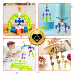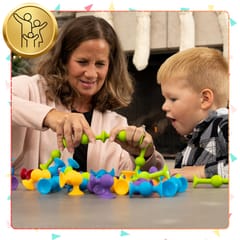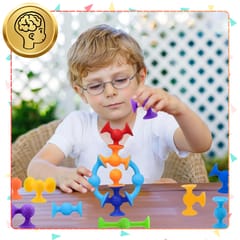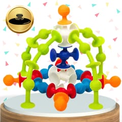 Dzięki innowacyjnej konstrukcji z przyssawkami, klocki trzymają się różnych powierzchni, co umożliwia budowanie trójwymiarowych konstrukcji i kreatywnych projektów.