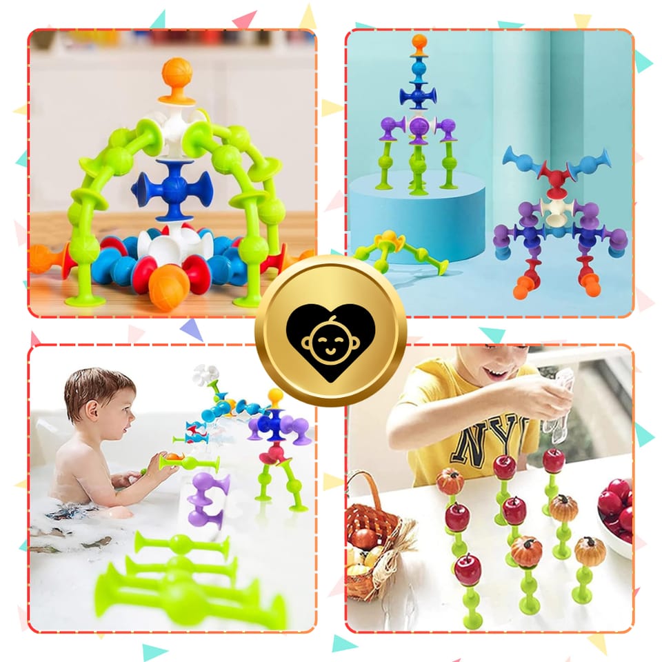 Silikonowe Klocki Konstrukcyjne z Przyssawkami – 48 Elementów Kreatywnej Zabawy?