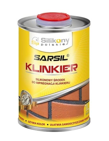 SARSIL® klinkier jest nowoczesnym preparatem silikonowym przeznaczonym do impregnacji cegły i płytek klinkierowych na elewacjach, ogrodzeniach, murkach, słupkach itp. Impregnacja uszlachetnia i ożywia barwę, a efekt hydrofobowy zapewnia długotrwałą ochronę klinkieru przed niszczącym działaniem wilgoci.