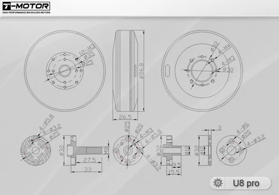 Silnik bezszczotkowy T-MOTOR U8 Pro 170kV